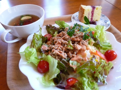 JUGEMテーマ:カフェ@京阪神 今週のはなちゃんらんちは、春のおやさいのケーク・サレキャロットサラダポテトサラダor苺のパスタサラダごはんorぱんお野菜たっぷりミネストローネ