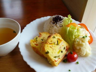 JUGEMテーマ:カフェ@京阪神 あけましておめでとうございます。今年もCaféはな よろしくお願いいたします。今週のはなちゃんの気まぐれランチは、おやさいたっぷりケーク・サレぽてとさらだあったかコンソメスープごはんorぱん