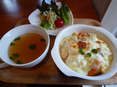 JUGEMテーマ:カフェ@京阪神 とても寒い日が続きますね、今週は、あつあつグラタンランチチキングラタンにおやさいをトッピング ごはんにかけてドリアにサラダスープ