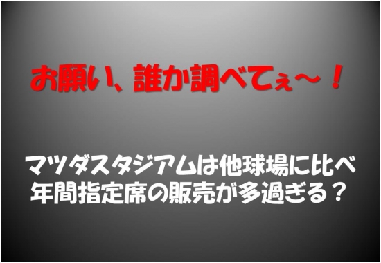 JUGEMテーマ:広島駅前の質屋さん (有)三益商事 今、お江戸でカープが戦っております。 ドームは空調設備が整っているので、野球観戦もバッチリ快適です。 広島は球団が年間シートの販売を増やしたので、一般人は困っておりま す。 どれだけの人が応援に行けないのか、調べてみたいもんです。 あ、そうだ。 どうせならマツダスタジアムの年間シートの販売実績を他球団と比べて 欲しいです。 市民球団の運営をこのまま放置していいものか、検証して欲しいよ。 納得できる状況なら受け...