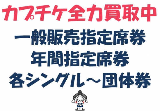 JUGEMテーマ:広島駅前の質屋さん (有)三益商事 こんにちは。 日中の日差しがだんだん厳しく感じるこの季節に、試合開始2時間前に スタジアムに行って飲んで食べて練習風景見て、始球式見て涼しい風が 吹き始める時間帯にナイターゲームを観戦してみたいです。 贅沢すぎますが、そんな野球観戦を妄想しております。 私の個人的な妄想は置いといて、改めてお知らせします。 カープチケットの買取を一生懸命続けております。 一般販売チケットは勿論、年間指定席券もお取扱いしております。 お売り...