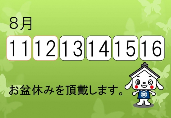 JUGEMテーマ:広島駅前の質屋さん (有)三益商事 こんにちは。 当り前の話ですが、記録的な大雨が広島市内でも降り続いておりまして、 開店休業状態です。 公共交通機関が相次いで運休している状況で、開店しているのがむしろ 不思議なくらいです。 皆さま身の安全を確保する事を最優先してお過ごしくださいませ。 さて、少し気の早い話ですがお盆休みのご案内です。 今年は過去最長のお盆休みになります。 8月11日〜16日の6日間です。 よろしくお願いします。 ...