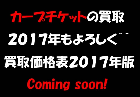 JUGEMテーマ:広島駅前の質屋さん (有)三益商事 おはようございます。 プロ野球選手にとって1ヶ月程度のオフも終わり、各球団ともキャンプ生活 に突入されているようですね。 我らがカープも宮崎県の天福球場での練習を始めたとローカルテレビのニュ ースを見ました。 いよいよプロ野球シーズンが始まるなって、実感しちゃいました。 と言う事で、今年もカープチケットの買取をさせて頂こうと準備中です。 ただいま買取価格表作成中でございます。 もうちょっとだけお待ちください^^...