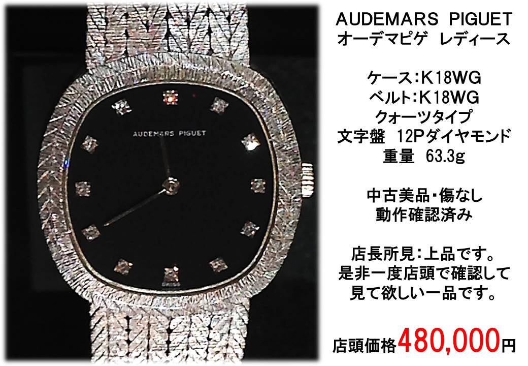 JUGEMテーマ:広島駅前の質屋さん (有)三益商事 こんばんは。 お江戸の方ではリオオリンピックのメダリストによる凱旋パレードが行われ たそうで、国民的行事とあって物凄い規模のパレードだったようですね。 私も寝不足になりながらテレビでオリンピックを見ておりました。 メダルを取れた方もそうでなかった方も、本当にお疲れ様でした。 そして、関係者の皆様も・・・。 今度は広島で開催されるカープの優勝記念パレードが楽しみですね^^ 今日は久しぶりの商品案内です。 AUDEMARS PIG...