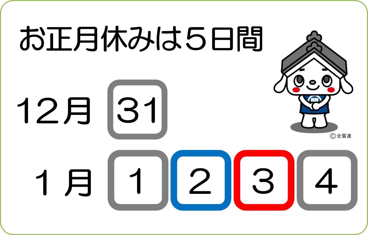 JUGEMテーマ:広島駅前の質屋さん (有)三益商事 こんばんは。 よく冷えますねぇ〜。 風邪などひかないよう連休を楽しんでくださいねぇ〜。 そろそろお正月休みについてご案内させていただこうと思います。 三益商事は創業以来、決まった休みをいただいております。 毎年、大晦日〜4日までの5日間が休みです。 5日からはちゃんと営業しますので宜しくお願い致します。 当店のお客様には緊急の場合には出来るだけの対応もしております。 一定時間、電話は自動転送され、閉店後に対応できる場合にはお店を開ける 事も...