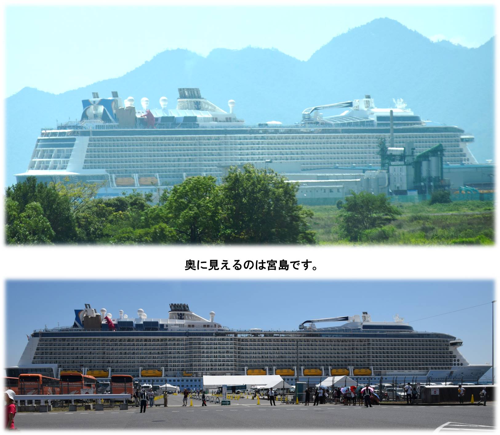 JUGEMテーマ:広島駅前の質屋さん (有)三益商事 おはようございます。 広島駅前の今日の天気はグングン気温が上昇しているみたいです。(肌感) 今朝までは涼しく感じておりましたが、早くもお肌がチクチクする感じです。 こんな日は熱中症に気を付けた方がいいですよ。 クァンタム・オブ・ ザ・シーズを見に行ってきました。 豪華客船は横浜で何度か見たことはありますが、瀬戸内海に浮かぶソレを見 た事はありませんでした。 宮島に被る豪華客船。 大きく見えますよねぇ〜。 船を見学する側の私なんかは珍しい船...