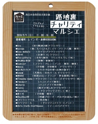 ▼▼▼▼▼▼ 2018.9.9(日) 11:00〜16:00 開催場所 レインボー倉庫HIROSHIMA #路地裏チャリティマルシェ 無事終了いたしました! 雨の中 たくさんの方にご来場いただきまして ありがとうござました(T_T)♡ ▼▼▼...
