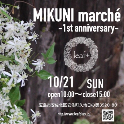 MIKUNI マルシェに出店いたします♡ ▼▼▼▼▼▼ MIKUNI marché -1st anniversary- 10/21(SUN) pen10:00〜close15:00 広島市安佐北区安佐町久地日の奥3520-80 http://leafplus.jp/ ▼▼▼出店者さん▼▼▼ 1.YOU タルト、焼き菓子、焼きたてスコーン instagram @motovuenavista.79 https://www.instagram.com/motovuenavista.79/ ブログ https://ameblo.jp/oy...