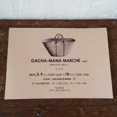 JUGEMテーマ:広島情報 ▼▼▼▼▼▼▼▼▼▼▼▼ ▼▼▼▼▼▼▼▼▼▼▼▼ GACHA-MANA MARCHÉ vol.3 に出店いたします^^ 今回は2days開催!!! 日曜日がお休みではない方も ご来場していただけそうですね^^ うれしいです(^o^)/ ガチャマナさんのランチ youさんの焼菓子 ドゥジェムさんのベーグル とっても人気なのでお早めに(^o^)/ 今回も素敵なshopさんの雑貨など溢れています^^ お二階がどんな空間になるのか、楽しみですねっ♡ みなさまお誘い合わせの上 ぜひ♡...