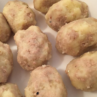 コロッケのたねです。 へしゃげてるのもあるけど、調理前に成形するんだからねっ! 15日から、午前中と午後に2回ブログを投稿する流れになっていますが、 別にそういう風に趣旨を決めた訳ではありません。ただ何となく、です。 という訳で、本日は「揚げるコロッケ」と「揚げないコロッケ」が選べます。 普通コロッケは揚げるだろ! と思われるかも知れませんが、 当店には【6月9日の記事】でご紹介した「揚げないコロッケ」があるので、 敢えて “揚げるコロッケ” “揚げないコロッケ” と表記いたします。