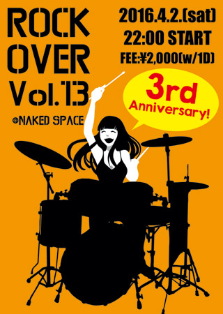 うーむ…当日になってしまいました。 ということで今夜【NAKED SPACE(松江)】で開催される 「ROCK OVER Vol.13」のフライヤーを制作しました。 ついでに今夜DJやってきます。 タイムテーブルがまだ未確定なので、 わたしは一体何時からやるのか分かりませんが、 イベント自体は22時からやってますのでよろしくどうぞ! (画像はクリックで拡大します)