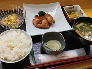こちらは本日の日替り定食。 本日のメニューは ・鶏肉の照り焼き ・キャベツとベーコンの煮浸し ・きのことカボチャのバター炒め ・油揚げとワカメの味噌汁 でした。 さて、【こちらの記事】に掲載したチラシに書きました通り、 土日祝はお休みですので、 ゴールデンウィーク期間中もお休みして ホテル清掃復帰してこようかと思ってたんですけど、 (営業がたちいかなくてお金に困ってるとかじゃなくて、 本当にふつーにやりたくなった…) 「ゴールデンウィーク(ていうか土日祝)じゃないと 行けないん...
