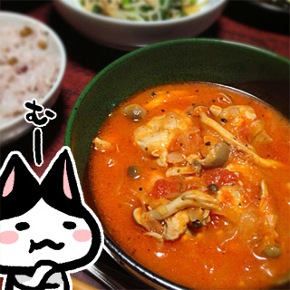 料理のレパートリーを増やそうと思い、 今日の夕飯は新しい料理にチャレンジしてみました。 鶏肉のトマト煮込み。 作ってみると色々「ああしよう、こうしよう」と思うので、 今日の時点でけっこう美味しかったけど、 次回お店で作った時は もっと美味しくなりそうな予感がします! きっと! まだまだ全然「理想のお店」に近づけてないから、 もっともっとがんばるぞ(^O^)/ (※画像はクリックで拡大します)