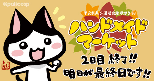 11月3日から5日まで行われる松江ハンドメイドマーケット、2日目が終了いたしました。 明日が最終日です!! 明日も開催しますのでよろしくお願いいたします! わたしは本日からの参戦なので自分の中では「1日目」だったのですが、いろいろと面白かったです。 そしてご来場くださったみなさま、ありがとうございました。 イベント出店は宣伝告知と口コミに全てがかかっている、ということを最近知りましたので、 今回のハンドメイドマーケットは今までにないくらい告知をがんばったのですが、 改めて「やっぱり事前告...