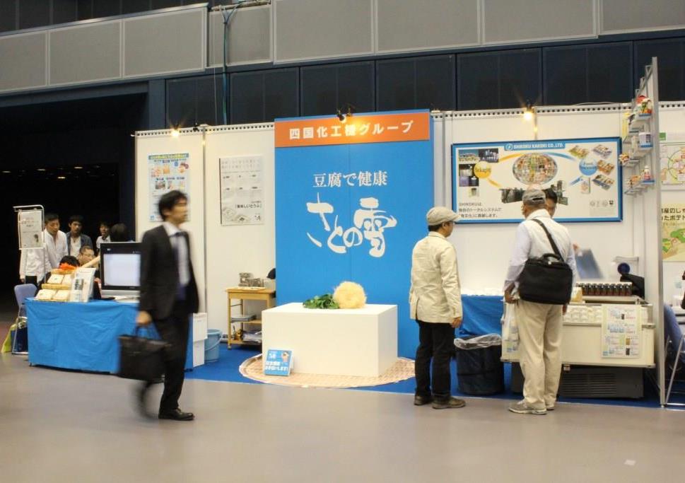 JUGEMテーマ:徳島 こんにちは、Fです。 10月9〜11日の3日間 アスティ徳島にてビジネスチャレンジメッセが今年も開催されました。 私達さとの雪食品も、 四国化工機グループとして出展しました。 ブースの真ん中にあるもの、何だかわかりますか? 無意味な白い箱じゃぁないですよ。。。 巨大なとうふの模型です! とうふのたれを乗せると…その巨大さがお分かりいただけますでしょうか… (えっ?分かり辛い?) おちゃめなシニアアドバイザーが、とうふの模型の横で いたずらをしていますよ! ...