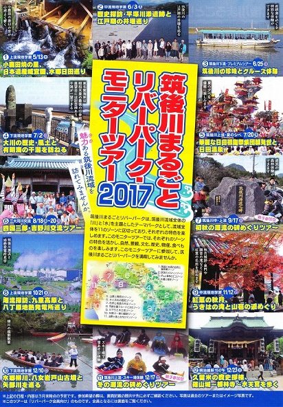 ●筑後川まるごとリバーパークモニターツアー 2017年度の予定 魅力あふれる筑後川流域を訪ねてみませんか。 ●下記は4月時点の計画です。今後の調整で変更する場合もあります。 ★筑後川を「調べる時」にはここからどうぞ!、 これは便利!動画も、ライブ画像も見れます! ↓こちらをクリック 「筑後川・矢部川まるごとインターネット博物館」 ★筑後川を「旅する時」にはここからどうぞ!、 筑後川流域の旅の総合情報サイトば、始めました! ↓こちらをクリック 「筑後川まる...