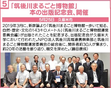 筑後川まるごと博物館の 本の出版記念会を実施しました。 5月25日久留米市 ★筑後川を「調べる時」にはここからどうぞ!、 これは便利!動画も、ライブ画像も見れます! ↓こちらをクリック 「筑後川・矢部川まるごとインターネット博物館」 ★筑後川を「旅する時」にはここからどうぞ!、 筑後川流域の旅の総合情報サイトば、始めました! ↓こちらをクリック 「筑後川まるごとリバーパーク・ よかばい!ちっご川流域めぐり」 ★筑後川流域の「川の情報、イベント情報」はコ...