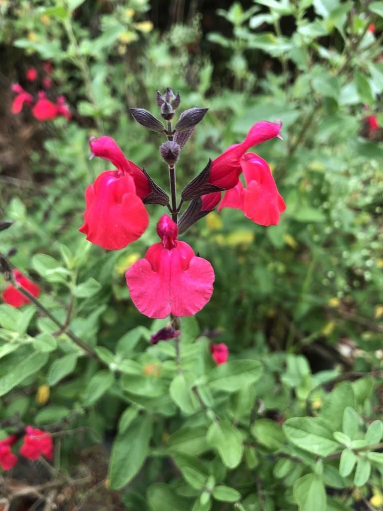 忙しい! とても忙しくて気忙しい! だからというわけではないけど この花の名前がいまだにわからない.. 画像に収めてかれこれ半月ほど経とうとしているのに.. なにが悔しいって、 画像がこの花の完成形なのか まだ開花途中なのかすらわからない 赤がハレーションを起こしてるのも恨めしく思える 葉がハーブっぽいなぁと思えるのだけど.. 仕事が片付いたら 勉強してきます 追記: その後、検索してみたら思いの外あっという間に 答えに辿り着きました 「チェリーセージ」 葉っぱがハーブっぽい...