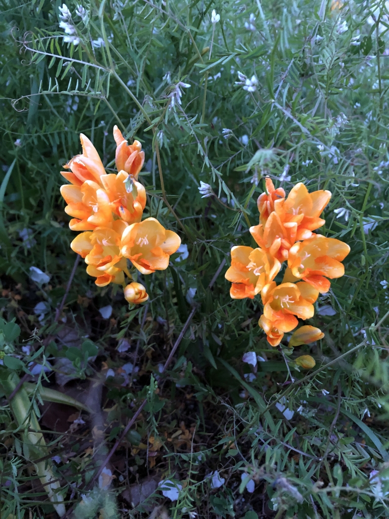 先日、逢魔が時 川沿いの土手でこの花にばったりと出くわしました 「菖蒲水仙(フリージア)」 夕闇が深まる中で「ぼわん」と浮かび上がった橙色の塊は まるで化け物を先導しながら揺らめく火の玉のようで 時が時なだけに思わずドキリとさせられました 犬も歩けば、ではありませんが 人も歩けば、色んな花と出会います. JUGEMテーマ:福岡市