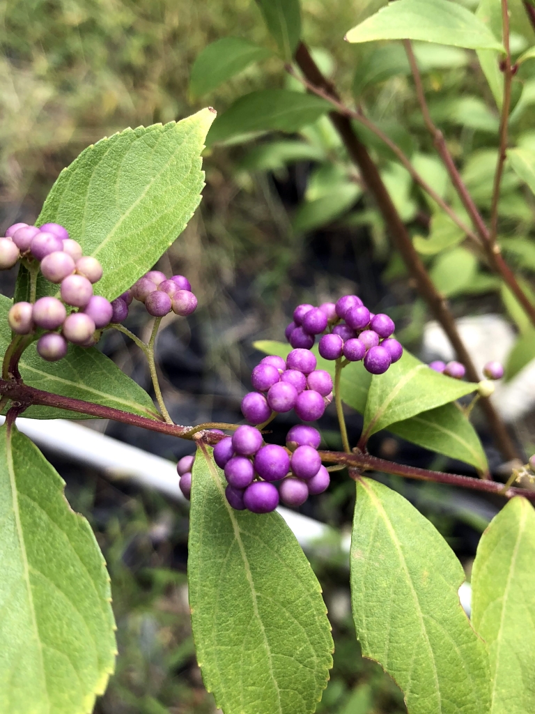 ムラサキシキブをちょっとこぢんまりとした愛らしい姿から「コムラサキ」 ムラサキシキブとは別種らしいですが、どちらも秋の山野に どこか雅な彩りを添えてくれます ムラサキシキブの葉縁が全体的に鋸葉なのにくらべ コムラサキの葉は、葉の先端から半分くらいまでが鋸状で 残りの半分は滑らかになってる違いから見分けられそうです 藤や朝顔の紫色ももちろん綺麗なのですが 空気が澄みはじめ、枯れ野が徐々に進みつつあるこの時期 ぽつぽつぽつっと顔を覗かせるこの紫の小粒たちは 他の季節には代えがたい趣を感じ...