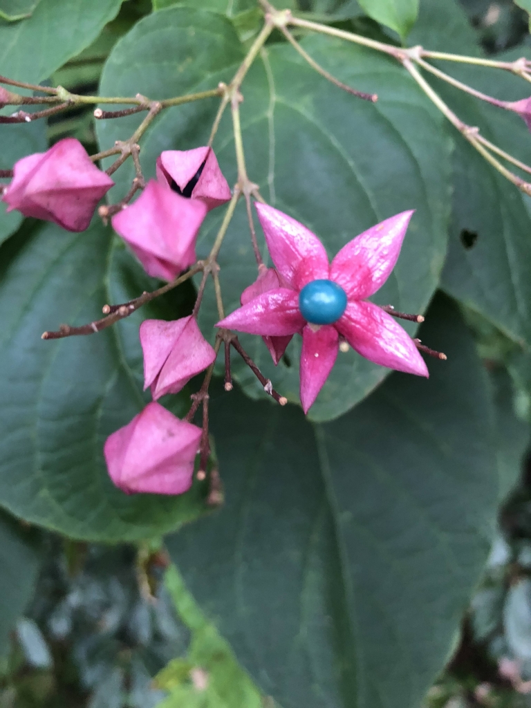 仕事が忙しかったり空模様がよくなかったり 歩けたり歩けなかったり. モヤモヤが少しずつモクモクとかたまり 先週の土曜日、台風が通り過ぎた日の夕方 意を決して行ってきました もうそろそろかなと見当をつけていた「クサギの実」 ありました! 最初に見た枝には、形を崩していたものばかりだったので それはそれで仕方ないなぁと諦めていたら、少し離れたところに! 赤いスターフィッシュのような萼を背中に纏い、 その一粒を鳥に食させようとするクサギの戦略! いろんな植物が、「たわわに」とか「鈴生り」な...