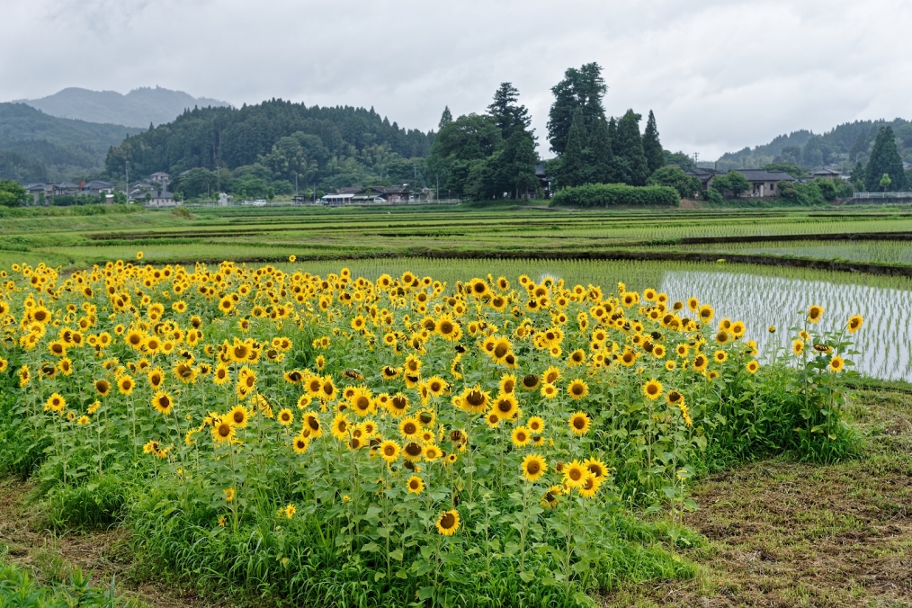 JUGEMテーマ:大分県豊後大野市 JUGEMテーマ:豊後大野市三重町 豊後大野市の青空を撮影した日、内山観音に行く途中で見つけたヒマワリ畑。 ここを撮影して帰宅するはずだったんですが、愛車にトラブル(^0^;) 結局、愛車は内山観音の駐車場から三国モータースへ、私は代車で帰宅。。。 そして翌日に梅雨入り、この日は雨が降っていたんです。 しかし雨にも負けず、代車で撮影に行ったんです(笑) このヒマワリ畑の近くでヒマワリを...