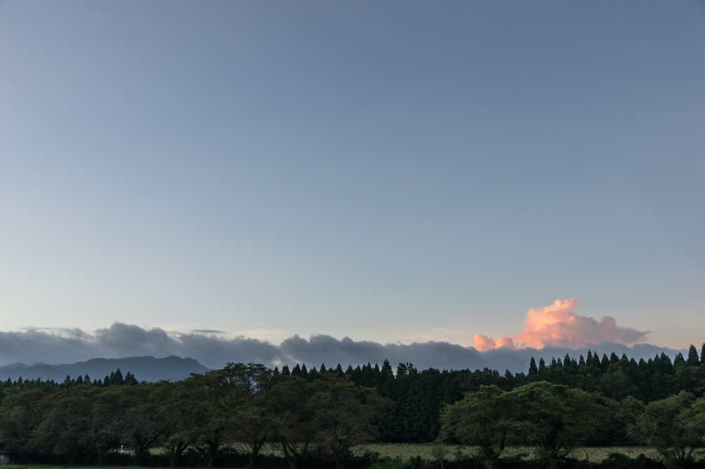 JUGEMテーマ:大分県豊後大野市 JUGEMテーマ:豊後大野市三重町 昨日の早朝です、低いところに黒い雲があって少し高いところに入道雲の卵みたいな雲が出てました。 ここ一週間くらい佩楯山がスッキリ・ハッキリ見えません、これって台風の影響で大気の状態が悪いからなんでしょうか。 台風がいなくなって暑さが戻ってきました、残暑が厳しいです(×_×) 昨日の早朝も吹く風が生暖かくて歩いてても気持ち悪い、、、「すがすがしい朝じゃなぁ」って思いながら歩けるのはまだ先...