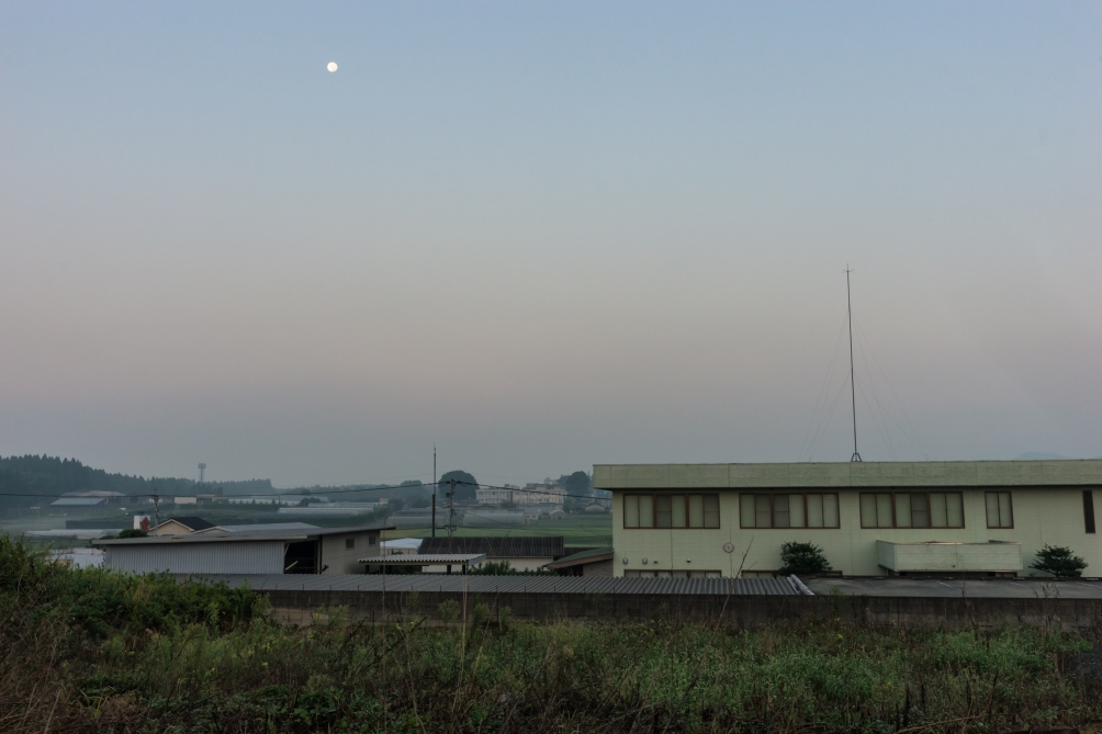 JUGEMテーマ:大分県豊後大野市 JUGEMテーマ:豊後大野市三重町 昨日の早朝はガスが発生していたようです、遠方は霞んでよく見えません。 月がハッキリ見えるってことは雲がないってことなんですが、このまま太陽が昇ると日中は暑くなります(苦笑 でも、昨日の早朝は空気が少し冷んやりしてました。 月の反対側は太陽です、太陽が昇り始めたってことは6時が近いってことです。 真夏から一時間くらい遅くなってます、そろそろ朝晩が冷え込んでいいんですが。。。 で...