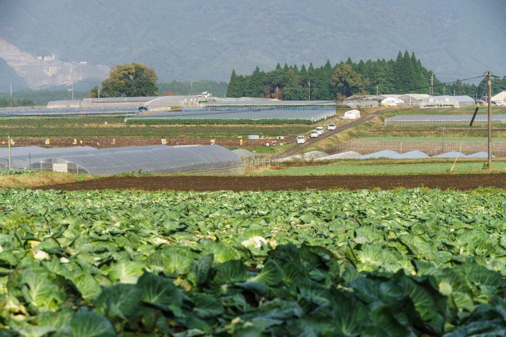 JUGEMテーマ:大分県豊後大野市 JUGEMテーマ:豊後大野市三重町 この日は大野町の小学校に行こうとしていました、郡山地区を通りかかったとき収穫をしていたので一旦下車。 ここ郡山地区の畑は色んなものを栽培しています、写真のキャベツ・芋・お茶にネギなど、たくさんの種類の野菜を栽培しているんですよ。 前日に降った雨でネギに雨滴がついていて、それが朝日で輝いています。 全国的にはネギの値段も高騰しているようです、その原因は台風。。。 二週続けて台...