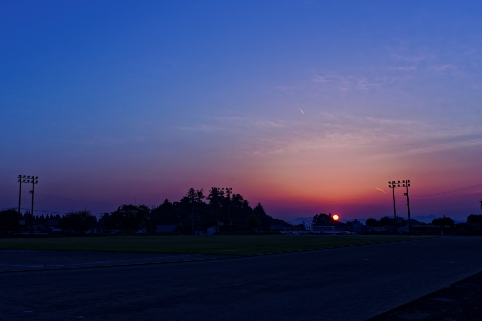 JUGEMテーマ:大分県豊後大野市 JUGEMテーマ:豊後大野市三重町 お盆前の昨日、朝日を追ってみました。 撮影した時間が朝の5時半、朝日が昇り始めます。 いつも思うのですが、この時間帯に自衛隊機だと思いますが必ず二機くらいの飛行機が佐伯方面に飛んでいきます。 この写真にも飛行機雲が写っています。 そして30分後の三重町中心部です、この時間になると人々の動きが目立ってきます。 散歩する人、犬の散歩をする人、出勤する人。。。 ...
