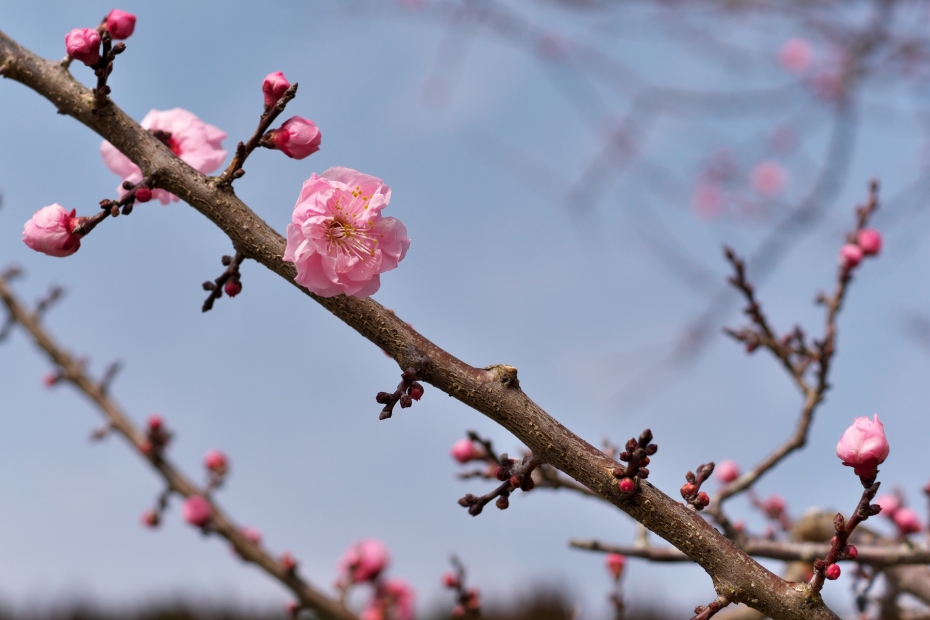 JUGEMテーマ:大分県豊後大野市 JUGEMテーマ:豊後大野市大野町 昨日の天気予報では一日曇りと報じられていましたが、清川町から緒方町へと移動して原尻の滝に着いたお昼前には少しだけ青空が広がりました。 この時とばかりに原尻の滝駐車場で紅梅を撮影、まだ蕾が多くてこれからが本番の紅梅でした。 うっすらと日が差す日中でしたが暖かい一日でしたねぇ、私は普段より2枚ほど薄着にしましたが全く寒さを感じませんでした。 そして今年初めて「ほととぎす」の鳴き声を聞きました、鳴き方はまだ練習不足のようでしたが(...