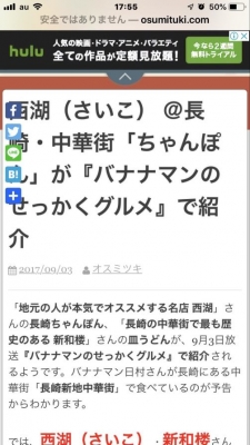 JUGEMテーマ:長崎県長崎市 早朝より 私のラインに 1枚の写真が 送り込まれた。 蔵本のある社長さんからだ。 先日 長崎の中華街で 飛び込んだお店 西湖さんが 2年前に 全国ネットで 取り上げられていた記事を 紹介。 長崎にいって食べた中華街のお店において 西湖(さいこ)さんの 長崎ちゃんぽん と 新和楼さんの皿うどんが 有名だそうです。 たまたま 3人で 入ったお店が 全国ネット紹介されるって 私も 蔵本...