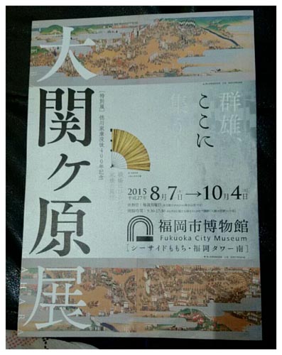 JUGEMテーマ:オススメスポット 10月4日まで開催の「大関ケ原展」 あと少しとなりました。 ずーっと行きたくて、しかし時間が作れず… なんとか無理矢理時間作って福岡市博物館へ! チケット売り場からほどなく、私の職業病が… パンフレットは銀色。 印刷は何色印刷にしたのか、何の機械を使ったのか…インクは?何刷り?版は何枚? 入口でたたずむ(-_-;) しかもですね、ただの銀色印刷ではない。 そう! 光の加減で出てくる...