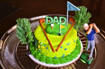 今日は父の日最近滅多に時間が取れずコースに出る機会が少なくなった夫。高校・大学とゴルフ部で毎日 ラウンドしていたのに子供や嫁に時間を制限され(笑)練習さえできないのはちょっとかわいそうかも・・・末っ子が大学に入ったらいっぱい ゴルフさせてあげなくっちゃ。そんな夫にゴルフのケーキ。このデコレーションは40歳のサプライスパーティーに作ったケーキの飾りを全部 大切にとっていたものです。ものもち 良すぎ・・・?(笑)そのときのケーキは大きなシートケーキで芝を見立てて ちゃんと バンカーも作りまし...