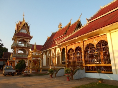 この寺は近所どころか近所も近所、自宅の玄関を開けると道を挟んだメコンの畔に建っている。 写真でいえば左側にメコン川が流れ、我が家は建物の反対側になる。 日没間際にこの寺の境内に来て、メコン川の向こうのタイに沈む夕陽を眺め、写真を撮ることも多かったが、ヴィエンチャン生活ももうすぐ終わる。 この寺は近隣では有名な寺で、10月の雨期明けにメコン川を舞台に繰り広げられるボートレースの中心の一つになり、その時期は延々と屋台がメコン川に沿って並ぶ。 寺の境内には造船小屋があって、時々その様子を観察するこ...