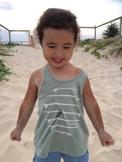今日は、昨晩雨が降って気温が下がり、だいぶ過ごしやすい日になりました。 が、雨が降る前の日って亜熱帯気候!! 昨日は、ものすごい湿気で暑かったです。 夕方、5時を過ぎてもエアコンのない木造ぼろアパートの我が家は、蒸し風呂状態…。 日が暮れるまで、ビーチに避難していました。 ローカルの子どもたちや、ワンコにフラフラくっついて行ってビーチでひと遊びしては、デッキに座ってる私のところに戻ってくる…を繰り返していたSummer。 こうやって、ローカルのみんながSummerのことを知...