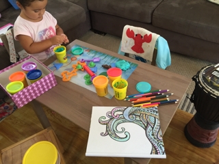 昨日は、朝からものすごい強風。 私が家にこもってられないたちなので、毎日Summerに「ビーチに行こう!」「買い物行こう!」「図書館行こう!」「友だちの家に遊びに行こう!」「プールに行こう!」と誘い、Summerが、たまには家でゆっくりしません?という目を私に向ける…。 でも、昨日はどうしたわけか、ビュービュー吹いてる風を見てどうも出かける気にならなかった私。 Playdoh(プレイドウ、カラー粘土)する?と聞くと、嬉しそうなSummer。 そうだよね、こういう遊びマミーはあんまりしてくれないもんね。...
