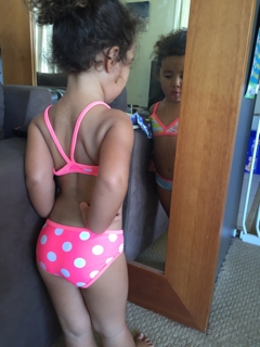 8月の頭から始めたこのブログ。 第二日目にSummerの水着を新調したと書いたのですが(『新しいヒトデ柄の水着』http://blog.sunny-smile.net/?eid=3&ref)、すでにパツンパツン…! そして、おむつが取れた今、トイレに走らなくてはいけなくなったので、ワンピースの水着だと脱がすのにもまた着せるのにも一苦労。 そこで、2ピースのビキニを購入してきました。(トイレットトレーニングについては後日また書きますね!) 1セット、私の妹が送ってくれたかわいいビキニがあるのですが、夏の今、ビーチにプールに1セット...