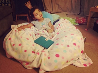 今日は日々の小さなことを徒然なるままに綴ります。 ?ある夕食後のこと。 「Summer Queen!」と言いだしたSummer。 家来のダディーに毛布を持ってくるように命じ、もう一人の家来マミーにはティアラを持ってくるように命じ、執事のバーバーシープ(!)にiPadを持ってくるように命じ、ビーンバッグに重鎮されていました。 なんだ、この貫禄は!! ?昨日の午後 私が、キッチンで細々やっていると、庭から「マミー!」とSummerとバーバーシープの声が。 下に降りてみると、「マミー、ディナー、ドウジョ〜!」とカ...