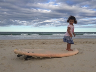 昨日の夕方、ビーチのお散歩に行ったらビーチにこんな物が打ちあがっていました。 子どもサイズの練習用サーフボード! 潮が上げてきてまた波に持っていかれそうだったので、波打ち際から離れたところまで引き上げておきました。 周りを見たけれど、子どものサーファーもいないし、きっと近くのビーチから流れ着いたんだろうな。 サーフボードの裏はもうコーティングがベロベロに剥がれていて、だいぶ水を吸っていたので使い物にならなそうだったので、そのままビーチにおいてきました。 誰か、持ち主が現れ...