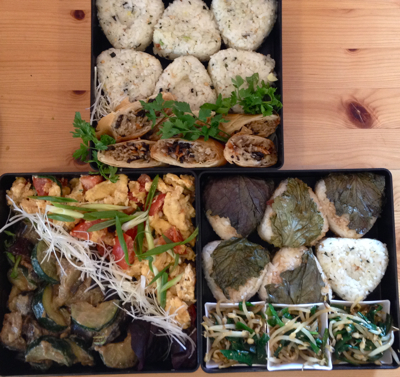 昨夜は夜中12時までの作業でした!なので、仕込みや買い出しの時間が全然なくて、今日のお弁当は朝急いで作ってこんなの。マスタードの葉のしょうゆ漬けのおにぎり、わさび味のおにぎり、茄子とズッキーニの味噌炒め、トマトとワケギのスクランブルエッグ、ニラともやしのピリ辛ナムル、海老の春巻き。わさび味のおにぎりに混ぜたものは、昨日日本から帰って来た友人からのお土産です☆嬉しい、ありがとう〜!今日は私は別行動なので、お一人様用。ちょっと蓋閉まっていないけど、まぁ家で食べるからいいか。。昨夜もちょこっと現場で...