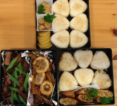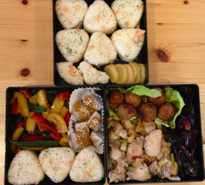 今日も朝からバタバタ。朝ご飯とお弁当作ったら、パソコン仕事して、その後現場に行って、買い出し行って、夜9時頃帰って来てから晩ご飯の用意と翌日のお弁当の仕込み、ていう感じです。取り急ぎ、今日のお弁当!鮭と胡麻のおにぎり、鶏もも肉とレモングラスの自家製スイートチリソースグリル、牛肉の和風コロッケ、パプリカとオクラの揚げ浸し、里芋の田楽、ビーツの葉のオリーブオイル炒め。お一人様用。今日のお弁当は特にバランスが良かったとお褒めいただきました!嬉しいな。これの他に、注文をいただき、追加も作りまし...