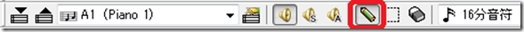 JUGEMテーマ:DTM それでは早速メロディを打ち込んでみましょう。 まずは基本操作の練習です。 ピアノロールペインの上にマウスカーソルを持って行ってみてください。カーソルが鉛筆マークになるはずです。なっていない場合は、エディットツールバーの鉛筆マークをクリックしてボタンを押しこんでください。 エディットツールバーが見当たらない場合は、表示メニューからツールバー→エディットツールバーにチェックを入れて表示させてください。 そうしたら、マウスの鉛筆マークの先端をピア...