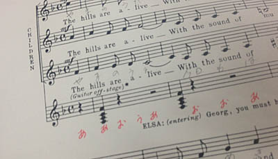 コーラスの練習で、宿題が出ました。 歌詞を母音で歌う、言葉をはっきり音に乗せる意味で 必要なレッスンということです。 確かに、フレーズの頭の音がはっきり聞き取れないと 「歌」らしくないですよね。 母音になおす、これが即興では難しいので 楽譜に書いてみました。 1フレーズずつ練習していきます。 2週間後には歌えてるかしら(^^; ことだまでも「あ〜お」は基本の音です。 全てにその意味は関連してきます。 「あ、い、う、え、お」の音 発音も意味も、とても大事。 音は「お...