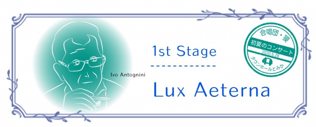 JUGEMテーマ:合唱 Lux Aeterna Lux aeterna luceat eis, Domine: Cum sanctis tuis in aeternum, quia pius es. Requiem aeternam dona eis, Domine, et lux perpetua luceat eis. Cum sanctis tuis in aeternum, quia pius es. 歌詞:著作権消滅 作曲:Ivo Antognini (JASRAC作品コード 1G0-0657-1) 合唱団・獏は、著作権のルールを守ってブログを運営しています。 歌詞掲載についてはこちらをご覧ください。 &nb...