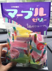 島根県のとある駅前(駅名を失念)のおみやげもの屋さんで出会った。 そのカラーリングに一目惚れ。小さい頃から紫とピンク、さらに水色とピンク、紫と水色という組み合わせにキュンとくる。 それはたぶんサンリオや魔法の使える魔女っ子たちやファンシー小物の影響だと容易に推測できるのだが。 各袋に白色で「マーブルゼリー」と書かれた様もかわいらしい。味も美味しく素材にもこだわっているみたい。 それで気になって「つやま屋」さんのHPを見てみると、 「ぷるり・...
