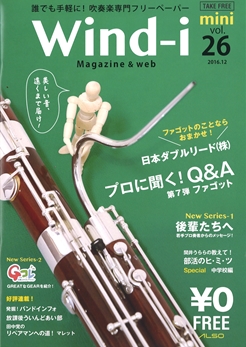 こんにちは、ミヤザワフルートアトリエ東京です☆ 吹奏楽専門誌 Wind-i(mini)vol.26 を入荷しました♪ 今回のプロに聞く!Q&Aはファゴットです! 取扱方法やリードの選び方のアドバイスが掲載されています♬ ファゴットのことならおまかせの日本ダブルリード株式会社についての 記事も載っています。 プロ奏者として挑戦し続けている20代の若手奏者にスポットをあてた 新連載『後輩たちへ』がスタート! 第1回はクラリネット&サックスプレイヤーの辻本美...