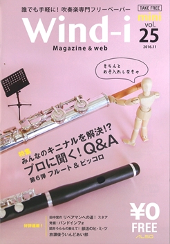 こんにちは、ミヤザワフルートアトリエ東京です☆ 吹奏楽専門誌 Wind-i(mini)vol.25 を入荷しました♪ 今回の特集はお待ちかね!フルート&ピッコロです Q.ピッチが安定しない・・・ Q.ディミヌエンドが怖い・・・ Q.指が回るようになりたい! などなど、フルート練習でのお悩み解決方法が満載! また、フルートのキィとポストの豆知識も掲載されています♪ あなたの好きな曲はどれ??(アンコン編)ページでは、フルートベスト3位までが 掲載されていま...