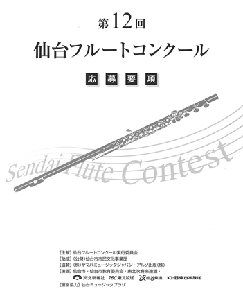 JUGEMテーマ:フルート こんにちは、ミヤザワフルートアトリエ東京です☆ 仙台フルートコンンクール実行委員会 主催 第12回仙台フルートコンクール の申込受付が8/1日(月)よりスタートしました! 「中学生以下の部」、「高校生の部」、「一般」の3部門があり、年齢・国籍不問。 日時は 9月22日(木)・23(金)予選(一般一次) 9月24日(土)予選(中学生以下・高校生・一般二次) 9月25日(日)本選・表彰式 場所は予選・本選共に日立システムズホール仙台(仙台市青年文化センタ...