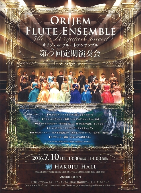 こんにちは、ミヤザワフルートアトリエ東京です☆ いつもお世話になっている竹下正登先生のコンサート情報です♪ 竹下先生には今春発売した新製品MXシリーズの開発にご協力いただきました。 2016年7月10日(日) 開場 13:30 開演 14:00 会場 HAKUJU HALL チケット ¥2,000(全席自由) 【 音楽監督】 竹下 正登 これだけ様々なフルートが揃うと壮観ですね(*^^*) 是非、フルートの音色に癒されてみてはいかがでしょうか? ○新商品 MXシリーズ 2016年4月10日発売○ ミヤザワのNEWモデル『M...